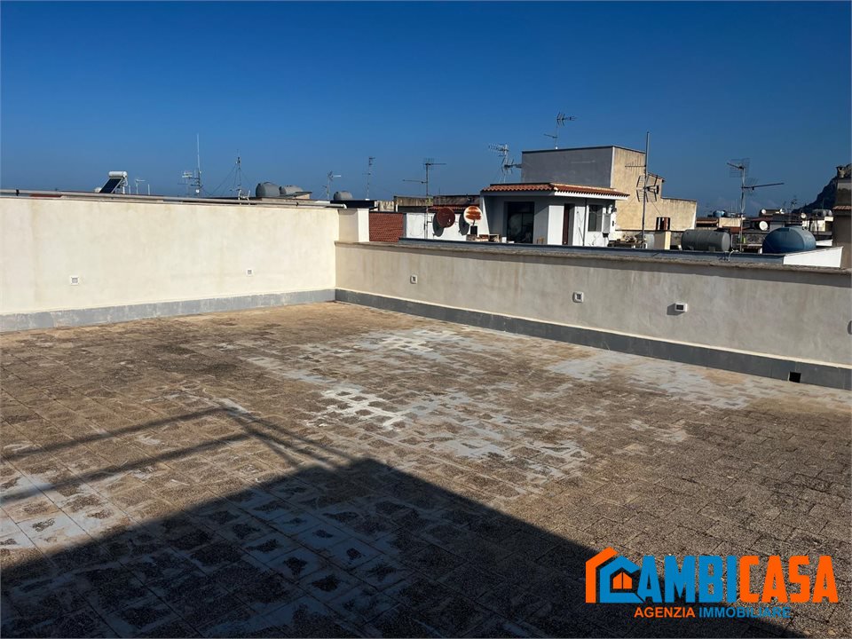 Cinisi /Via Nazionale in zona fornita di attivitā e servizi e precisamente in Via Imbriani, disponiamo in vendita un immobile di circa 135 mq. posto al 2° Piano senza ascensore, composto da: ingresso, soggiorno, 3 camere, cucina abitabile, bagno con doccia, bagno con vasca, ripostiglio. Da scala esterna condominiale si accede al 3° piano dove č ubicata una terrazza di pertinenza di circa mq 150. L'immobile gode di doppia esposizione, sono presenti, 2 balconi, Infissi in legno, pavimenti in ceramica.