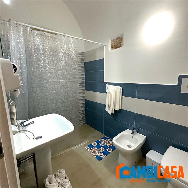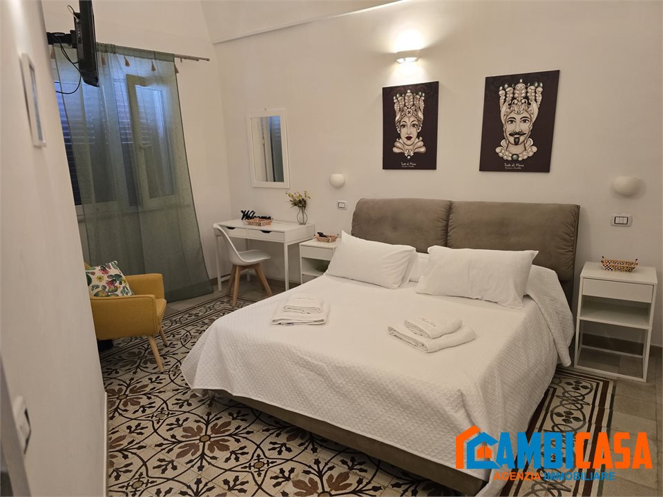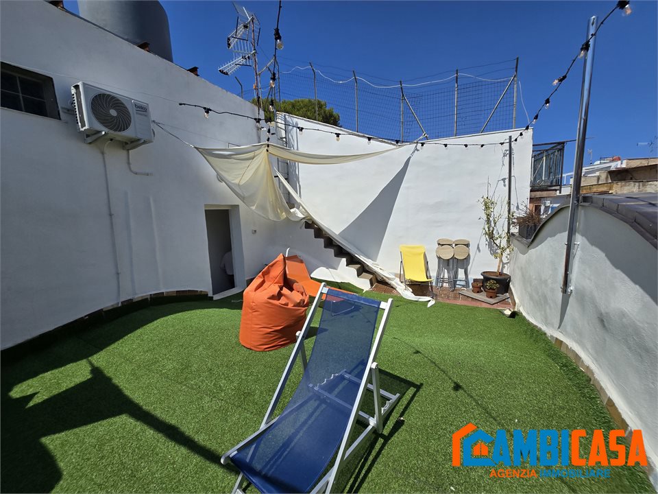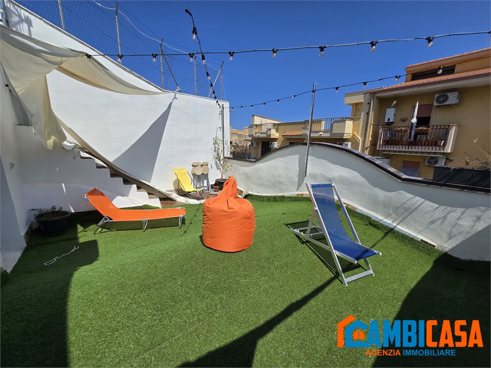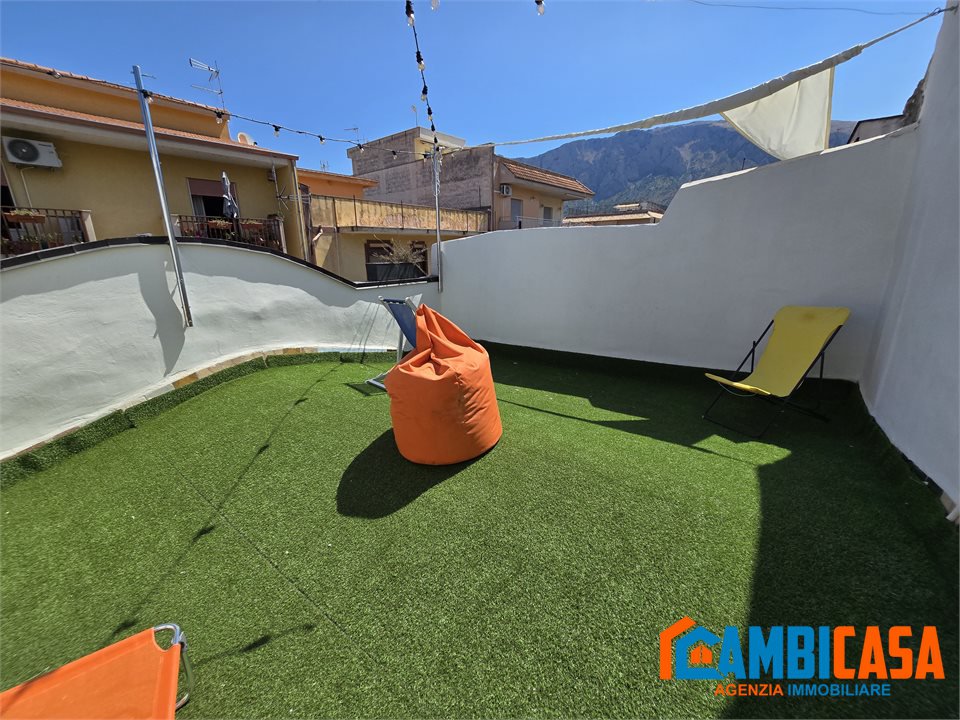 Via Palermo a 500 mt da Piazza Duomo casa indipendente in vendita 122 mq su 2 elevazioni composta da Piano Terra : ingresso, 3 camere di cui una con bagno privato e cabina armadio, un ulteriore bagno e ripostiglio; Primo piano: cucina abitabile, bagno e 2 terrazzi di 35 mq e 26 mq. Climatizzato. Come da foto l'immobile č totalmente ristrutturato, si presta sia come residenza privata pronta per essere abitata o come forma d'investimento affittandola a turisti, numerosi in ogni periodo dell'anno attratti dal mare e pių in generale dalle risorse turistiche di Terrasini. Il fatto che si tratti di una costruzione indipendente poi influisce positivamente nella scelta dell'acquisto di un bene nel vasto panorama immobiliare.