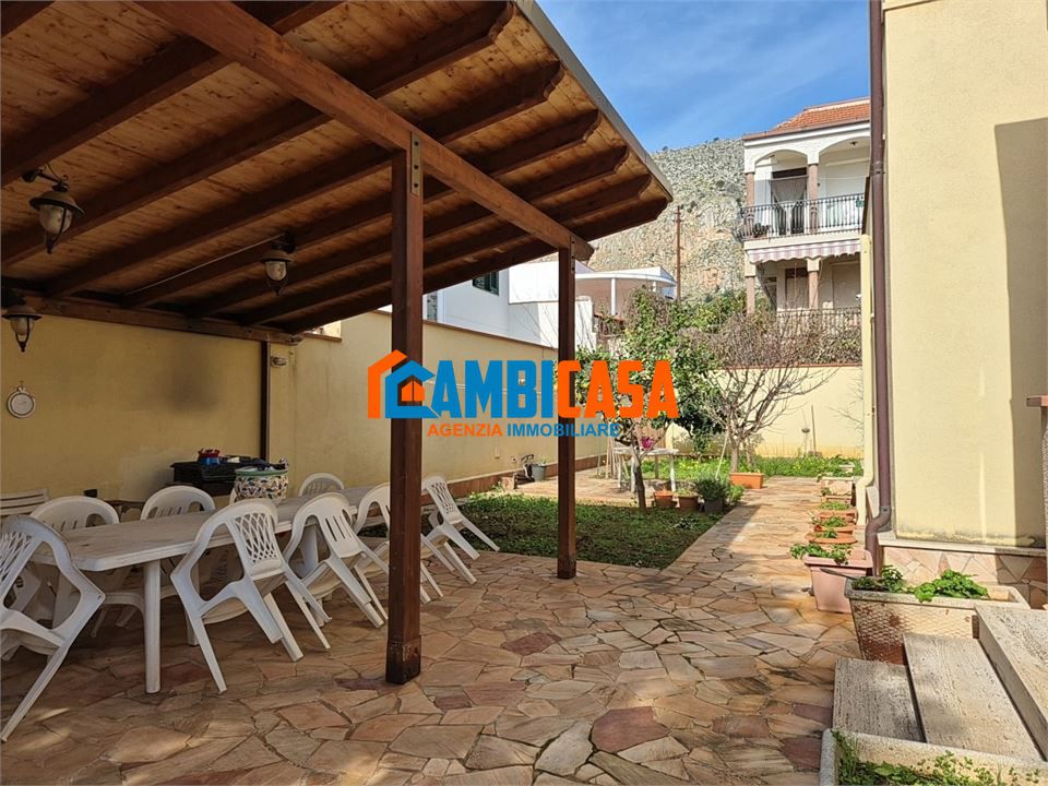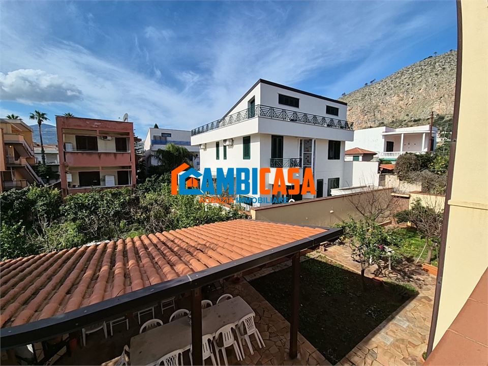 VIA AGENORE Nella rinomata zona di Mondello, a pochi minuti dalla Piazza e inserita in un contesto privato, esclusiva villa indipendente realizzata nel 2005 con ottime rifiniture e ampi spazi esterni. Caratterizzata da criteri costruttivi moderni e progettati per dare confort nel tempo, questa villa sorge su un lotto di 600 mq complessivi che, al netto della costruzione, lasciano 500 mq di spazi esterni tra terrazzi e spazi coltivati con piante ornamentali e alberi da frutto. La villa si sviluppa su 2 elevazioni collegate da una elegante scala in marmo molto comoda. L'ingresso alla villa è da un cancello automatico sullo spazio esterno che circonda la casa, su cui trova posto anche una zona destinata al parcheggio. Al piano rialzato si trova la zona giorno/living con 2 ingressi, uno sul salone doppio - elegante e di rappresentanza caratterizzato da 2 ampie vetrate sul giardino oltre un ampio portico sul retro - e uno sull''ampio soggiorno con cucina a vista in muratura, camino e terrazzo sul retro prospetto. Su questo piano è presente anche un vano lavanderia, con accesso diretto al terrazzo sul retro. Allo stesso piano è presente un wc doccia di servizio, molto comodo e funzionale. Il primo piano ospita la zona notte con 3 camere e il bagno principale. Le camere da letto, tutte molto ampie, dispongono di un'uscita sull'ampio terrazzo prospicente il prospetto principale. La camera patronale dispone di un wc doccia in camera e un balconcino sul retro. Una seconda camera matrimoniale, anche questa con un balconcino sul retro, dispone di una pratica cabina armadio. Infine una terza camera matrimoniale con apertura sul terrazzo principale. Infine la villa dispone di una mansarda sottotetto utile come vano tecnico o locale deposito/ripostiglio. Lo spazio esterno, accessibile da diversi punti della casa, è prevalentemente terrazzato ma non mancano zone di verde coltivate con alberi di prugne, melograni e albicocche. La villa dispone di infissi in alluminio a taglio termico con vetri anti sfondamento, fan coil per il riscaldamento invernale e la climatizzazione estiva, impianto di allarme, boiler di 200 litri con pannelli fotovoltaici, cancello automatico e video citofono. Lo spazio esterno, in parte coperto con delle tettoie regolarmente catastate e fornite di tutte le autorizzazioni urbanistiche, permettere di vivere comodamente gli spazi esterni per meravigliose cene all'aperto in un contesto riservato e rilassante. Infine, le caratteristiche degli spazi esterni, permettono di realizzare una piscina di 50 mq previo presentazione del progetto.